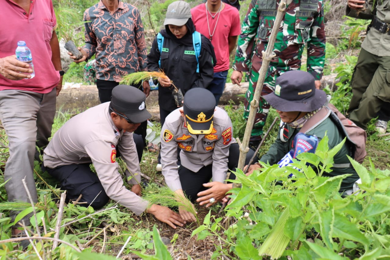 Takengon (AJP) – Kapolres Aceh Tengah, AKBP M Taufiq menanam 1.500 bibit pohon pinus di Desa Nosar, Kecamatan Bintang, Kabupaten Aceh Tengah, Rabu, 1 Oktober 2025.